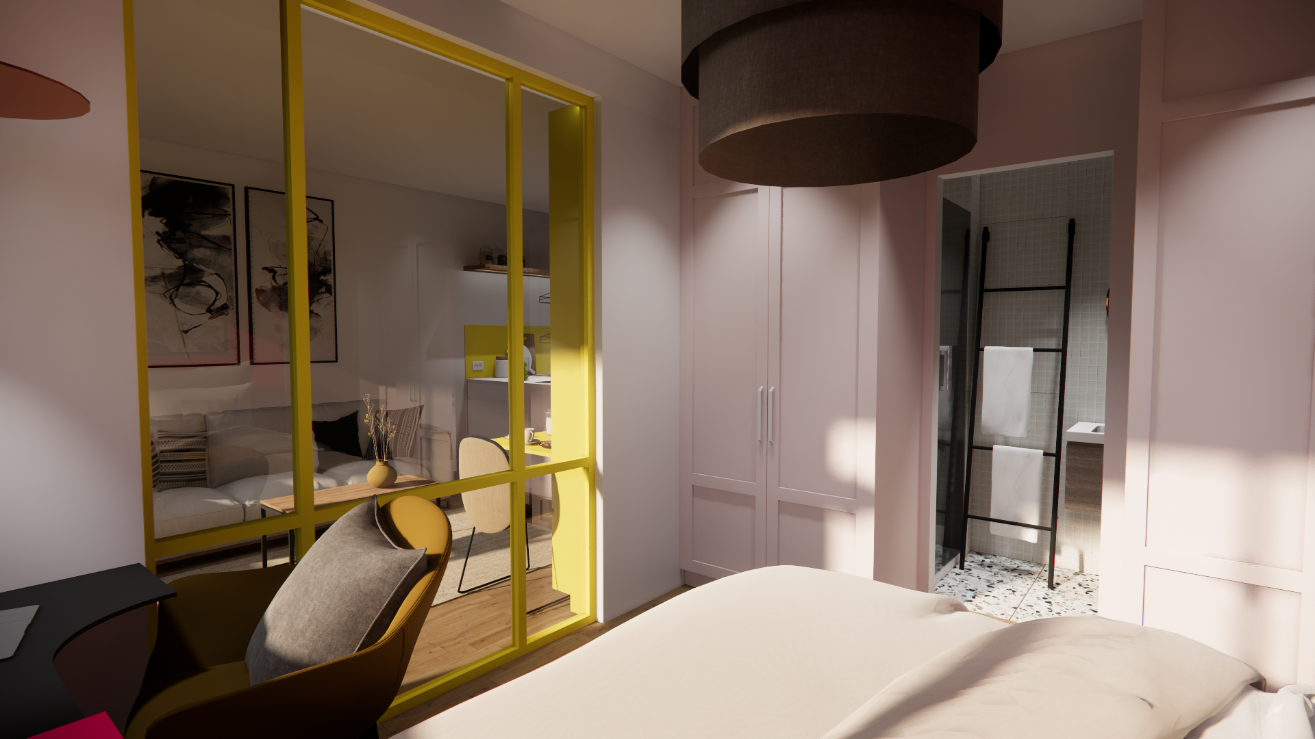 Résultat : un studio optimisé, coloré et fonctionnel, qui offre désormais une vraie qualité de vie malgré sa petite superficie.